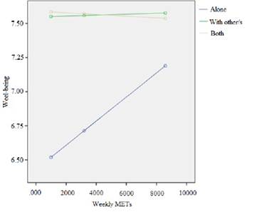 Table 6 Results of the analysis of the moderating role of the company in physical activity on the relationship between METs consumed weekly and total well-being