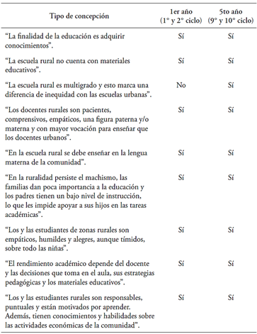 Tabla 1 Concepciones identificadas entre los estudiantes de 1ro y 5to año de la carrera de educación
