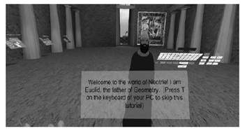Segunda sesión. Tuvo una duración de dos horas académicas. Se enseñó al alumnado a acceder al programa NeoTrie VR. Dentro del programa los estudiantes se visualizarán en un templo en el que aparece la figura de Euclides, que les brindará ayuda en caso la necesiten.