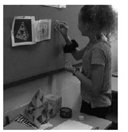 La esponja de Menger presentó la mayor dificultad en su construcción. Esto se debe a que en un principio los alumnos habían construido solo la parte frontal de dicho fractal. Algunos miembros del grupo, al darse cuenta de que faltaba gran parte del fractal, y tras un breve diálogo, dieron indicaciones al que llevaba las gafas y así lograron la construcción completa. Entre los medios de apoyo que usaron para la corrección, contaron con materiales manipulativos, en este caso un modelo físico de la esponja de Menger (ver figura 4).
