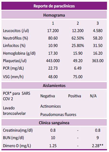 Tabla 1 Reporte de paraclinicos durante hospitalizacion del paciente.