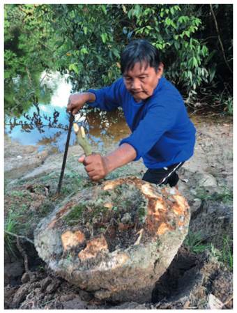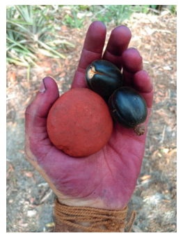En el proceso de remoción de las familias no indígenas, Domingos y su familia dejaron la localidad de São Raimundo y se fueron a vivir en Boca do Apahã. Sin embargo, hay que considerar que Apahã es un territorio tradicionalmente ocupado por los wayafi, uno de los subgrupos madi. En el diálogo con Berinawa (Gasparino Jamamadi), un importante líder wayafi fallecido en 2019, él relató que en las cabeceras del Apahã todavía hay grandes pedazos de warakana que han sido enterrados por su abuelo Afi antes de que dejara la región debido a los conflictos. Warakana es una cera producida a partir de la resina del árbol brea-caspi (Symphonia globulifera). Esa resina, o cerol, como es popularmente conocida entre los ribereños, es utilizada por diversos grupos indígenas para fijar e impermeabilizar la cinta de envira a lo largo del cuerpo de la cerbatana o para encerar hilos, que se vuelven impermeables y más resistentes. Muchos pueblos amazónicos utilizan la savia de S. globulifera en la producción de resinas. Sin embargo, la receta de los jamamadi para su fabricación es mucho más elaborada. Además de la leche amarilla típica, ingrediente principal, también se utilizan las savias lactescentes de leche-caspi (Couma macrocarpa) y de la liana de un árbol llamado sabano por los jamamadi.