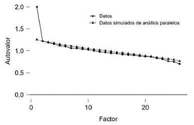 Se inició con el ajuste de la base de datos con la supresión de respuestas incompletas y con el análisis de casos atípicos a través de la prueba de distancias extremas de Mahalanobis. Los análisis estadísticos se desarrollaron a través del software Jasp, versión 17.1, en el cual se realizaron análisis factoriales exploratorios dado que no existía una estructura factorial inicial en Colombia. En este análisis se encontró que se cumplió con el principio de adecuación del tamaño muestral (prueba Kaiser-Meyer-Olkin superior a .70) y de adecuación de la matriz de correlaciones con la prueba de esfericidad de Bartlett (significancia inferior al .05). Se procedió a llevar a cabo dicho análisis factorial con un método de estimación de mínimos cuadrados ponderados ya que los reactivos están en escala ordinal, y una rotación oblicua tipo promax dada la inter-correlación existente entre los factores (Lloret-Segura et al., 2014). Se eligieron los factores de acuerdo a las recomendaciones de Lloret-Segura et al. (2014), que refieren la conservación de factores derivado del análisis paralelo (Timmerman & Lorenzo-Seva, 2011), la interpretabilidad del modelo obtenido (claridad de factores y cargas de reactivos), la teoría que lo soporte, e indicadores RMSEA menores a .08.