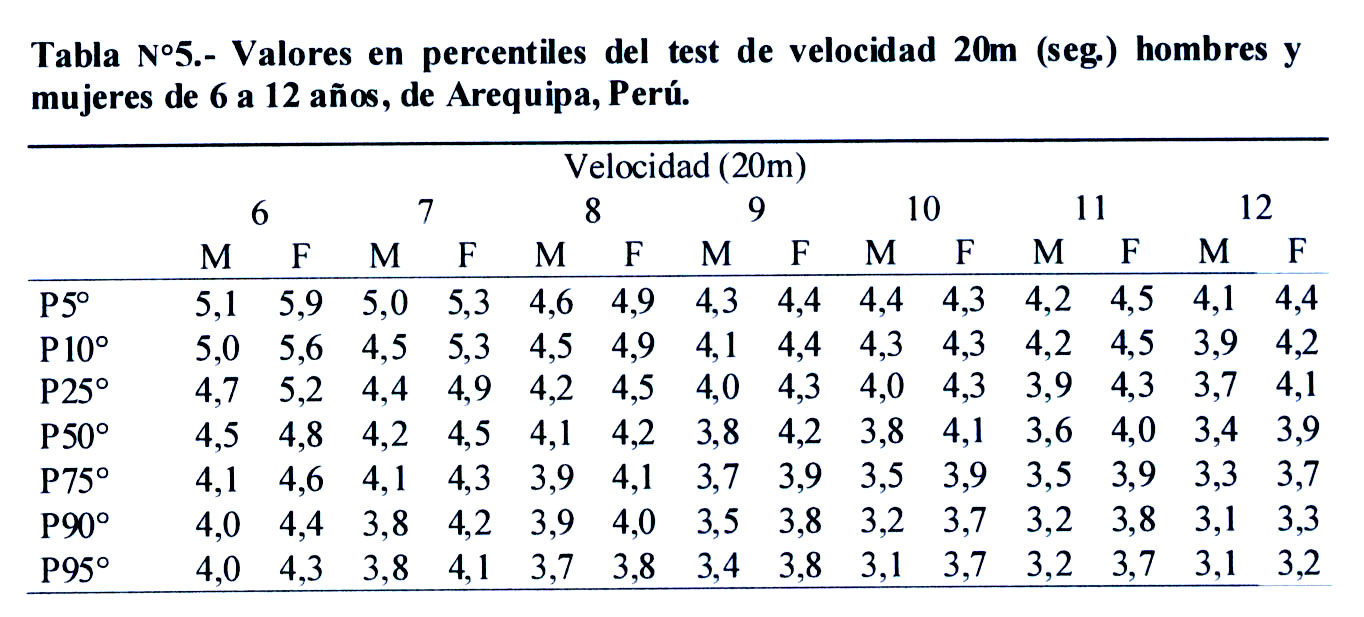 Propuesta de valores normativos para la evaluación de la aptitud física en niños de 6 a 12 años de Arequipa, Perú.
