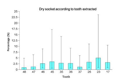 Table 2 Extractions with and without dry socket, according to the tooth removed.