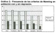 Cuando evaluamos si había alguna diferencia en la frecuencia de los síntomas en los casos con depresión asociada, encontramos que la distribución es similar, salvo por el dolor, que es un poco más frecuente en esta subpoblación (gráfico 2).
