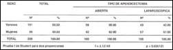 Pero si analizamos en forma comparativa el tipo de complicaciones para ambas técnicas encontramos grandes diferencias. En la técnica abierta todas las complicaciones fueron por infección de herida operatoria; en cambio en la técnica laparoscópica, como era de esperarse solo 2% de infección de herida y 3% de hematoma de pared, pero 7% de abscesos intraabdominales, todos ellos en pacientes que tuvieron apendicitis perforada y requirieron reintervención quirúrgica. Es necesario precisar que los hallazgos reportados se explican por la variedad de cirujanos que intervienen, por la curva de aprendizaje y por los antecedentes patológicos; ya que sabemos que la técnica laparoscópica tiene grandes ventajas por: mínimo dolor e infección de herida operatoria, incisiones pequeñas, rápida recuperación e incisiones estéticas Pier, (13), además de que el abordaje laparoscópico permite una fácil y rápida localización del apéndice, la posibilidad de explorar toda la cavidad abdominal, para hacer un lavado exhaustivo que permite reducir los abscesos residuales, rápida recuperación del peristaltismo intestinal y mínimas adherencias postoperatorias, Valla (3).