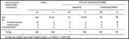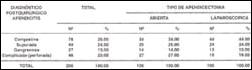 La evaluación comprende los pacientes operados de apendicitis aguda durante el año 2,000 mediante las dos técnicas quirúrgicas: AA versus AL.
