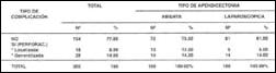 | Cuadro N° 4. Pacientes estudiados según tipo de apendiccectomía y tipo de complicación. Hospital Carlos a. Seguin año 2000. |