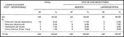 | Cuadro N° 8. Pacientes estudiados según tipo de apendiccectomía y complicaciones postioperatorias. Hospital Carlos A. Segun año 2000. |