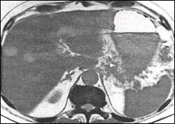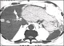 Fig. 1. CT scan showing the large pancreatic pseudocyst