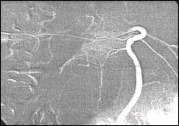 The use of Doppler flow ultrasound allows diagnosis of important pseudocyst complications such as pseudoaneurysms and varices (7). But in the non suspected patient of liver cirrhosis a big blood vessel was showed by angiography in the extra wall of pancreatic cyst (Fig.9). In any case EUS is an excellent method to localise the optimal spot for puncture of the cyst and to avoid haemorrhage due to injury of intra- or extramural blood vessels. Proof of pseudocysts by EUS is better than with CT(EUS 89% : CT 74%) especially with cysts of less than 2 cm diameter (EUS 83% : CT 33%) (8).