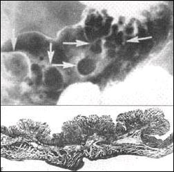 Las características patológicas señalaban la hiperplásia glandular, la cual en la primera, se manifestaba como formaciones sesiles o pedunculadas y en la segunda por pliegues difusamente engrosados, algunos localizados y que recordaban a las circunvoluciones cerebrales. Él describió 2 casos de trasformación carcinomatosa (posiblemente en la primera forma), una fue una elevación ulcerada acompañada de múltiples pólipos (polyadenomes) y el otro un cáncer infiltrante.