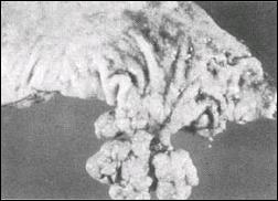 Fot. 4.- Fotografía original de MacCarty que muestra lo que el llamó: "Pólipo Gástrico Carcinomatoso" y manifiesta tex-tualmente: "alguna vez muestran alteraciones carcinoma-tosas. No debe confundirse tales pólipos adenocar-cinomatosos con aquellos carcinomas que adquieren un aspecto polipoeideo o en coliflor. Es raro observar un pó-lipo carcinomatoso con invasión de los ganglios linfáticos, mientras que los carcinomas polipoides presentan siempre invasión ganglionar"