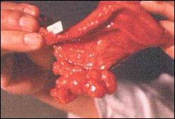 Para un exacto diagnóstico de enfermedad de Ménétrier se requiere de una biopsia "Jumbo" y mejor aún de una plieguectomia como se muestra como en un caso nuestro Foto. (3)