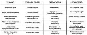 En la Tabla 1 observamos que muchos autores hablan de hiperplasia suprafoveal y algunos de ellos agregan el término de pólipoide; este último criterio a sido considerado por nosotros cuando hemos efectuado biopsias y polipeptomias en formaciones con carácter de pólipo (elevación de la mucosa hacia el lumén del estómago).