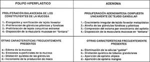 Raramente tejido displásico o adenomatoso esta presente en el pólipo hiperplástico estos cambios son considerados secundarios; se les denomina pólipo hiperplástico displásico (adenomatoso). Snover lo denomina como pólipo hiperplástico mixto (Tabla 1) y lo sitúa en la categoría de pólipo neoplásico.