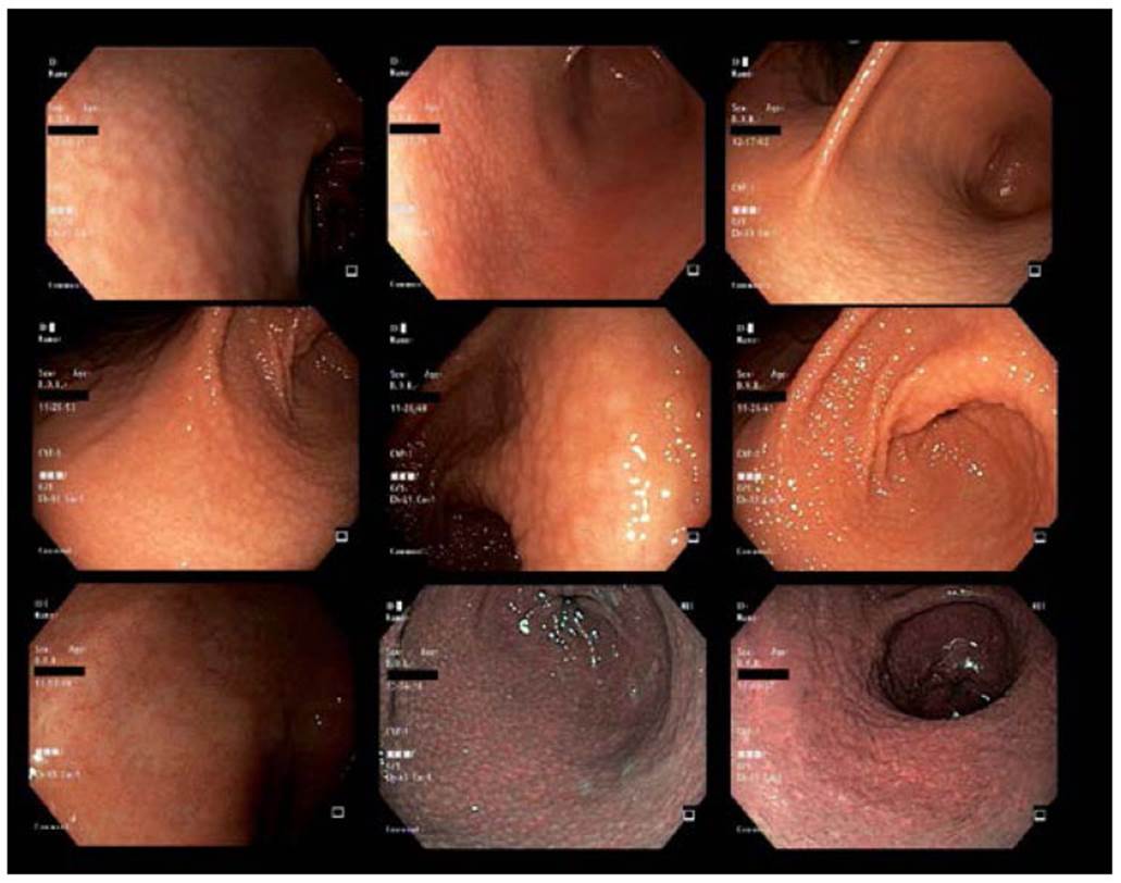 Follicular gastritis (FG) consists of a particular chronic persistent inflammatory process, which is preceded by Helicobacter pylori (H. pylori) infection 1,2. These bacteria are estimated to have infected more than 50% of the global population 3-6. Likewise, it has been proposed that the acquisition and colonization of H. pylori begin in childhood and are established as a chronic infection. This triggers perpetual and progressive gastric inflammation, leading to clinical complications in about 1-10% of patients 7,8. In this sense, H. pylori has been associated with diseases such as peptic ulcer, atrophic gastritis, intestinal gastritis, gastric cancer, and mucosa-associated lymphoid tissue lymphoma (MALT) 1,8. In addition, the International Agency for Research on Cancer 9 of the World Health Organization (WHO) has classified it as a type I carcinogen 10. It is also worth mentioning that H. pylori infection has been included as an infectious disease in the update of the International Classification of Diseases (ICD-11) 11. Therefore, all infected patients must receive adequate treatment, generating a paradigm shift since treatment is no longer only reserved for patients with clinical manifestations of infection 12.