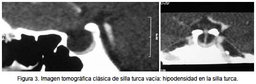 El término silla turca vacía (STV) fue propuesto por Busch, en 1951, para referirse a una condición anatómica observada en estudios de autopsia, particularmente en mujeres, caracterizada por una fosa hipofisiaria prácticamente vacía, ya que la glándula hipófisis se encontraba aplastada hacia el piso, dorso y paredes laterales (1-3). En 1968, Kaufman demostró que la morfología hipofisiaria se debía en realidad a un desplazamiento del espacio subaracnoideo (ESA), pero se siguió aceptando el término original (4). Leclercq propuso el término aracnoidocele intraselar, ya que de esta manera se expresa el detalle anatómico primordial (5); sin embargo, esta denominación no ha sido muy popular en la literatura internacional.