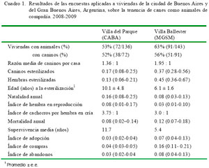 El objetivo del presente estudio fue estimar índices demográficos de las poblaciones de caninos y la conducta en la tenencia de animales en áreas urbanas para evaluar el impacto de la esterilización quirúrgica en la población canina en la ciudad de Buenos Aires, y Gran Buenos Aires, Argentina.