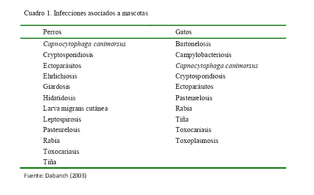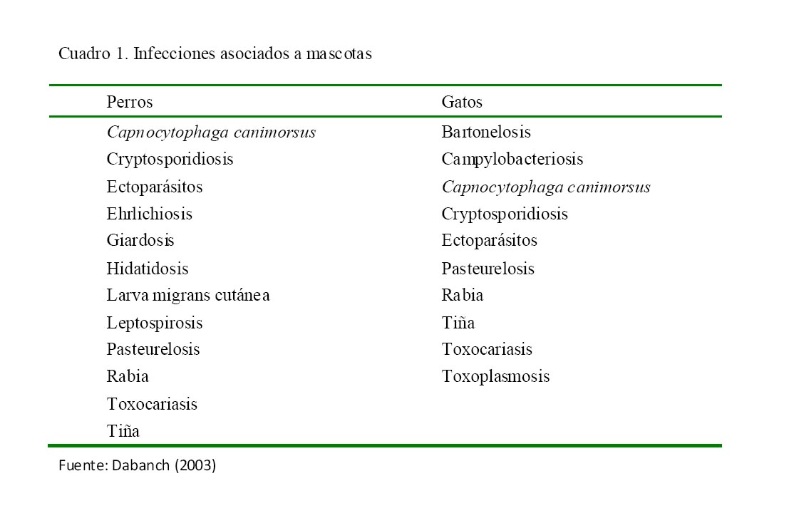 Las enfermedades zoonóticas han ido adquiriendo mayor relevancia en los últimos años, incluyendo el rol de las mascotas en los hogares, donde conviven estrechamente con el ser humano (Miró, 2001; López et al., 2006). Dabanch (2003), por su lado, describió la realidad chilena con respecto a las zoonosis, destacando los agentes etiológicos asociados, según la especie que los transmite (Cuadro 1).