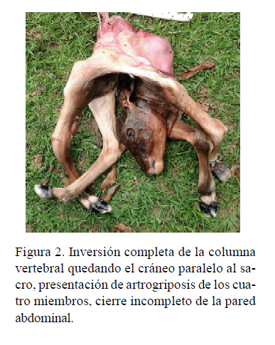 Schistosomus reflexus ha sido reportado en caninos en Colombia (Molina et al., 2012), pero este es el primer reporte en bovinos. No obstante, existen diversos reportes en rumiantes en otros países (Prestes y Megid, 2010; Ferreira et al., 2013; Barua et al., 2014; Sitali et al., 2014).