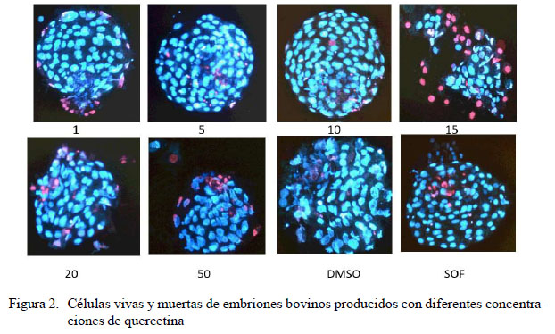 El uso de bajas concentraciones de quercetina en la fase de cultivo no interfiere con la celularidad y la viabilidad celular de los blastocistos bovinos producidos in vitro.