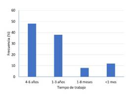 Figura 1 Porcentaje del tiempo que llevan trabajando los operarios en la planta de beneficio de Boyacá, Colombia