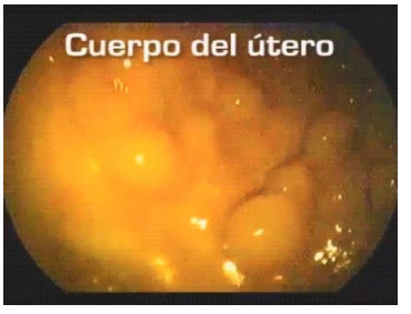 Figura 1 Endoscopia uterina en yegua de 18 años, donde se observa hiperplasia endometrial moderada a nivel del cuerpo uterino