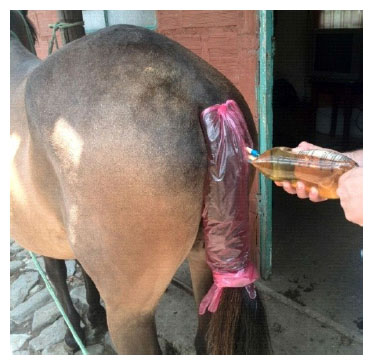 Luego del tratamiento antibiótico se realizó una infusión intrauterina con 1 g de Nacetilcisteina. Luego del celo se realizó una infusión de plasma rico en plaquetas a un volumen total de 120 ml (Figura 2) y se indujo anestro con RegumateR (Altrenogest) a una dosis de 1 ml/kg peso. Pese a los tratamientos y los servicios realizados la yegua en la actualidad continúa vacía.