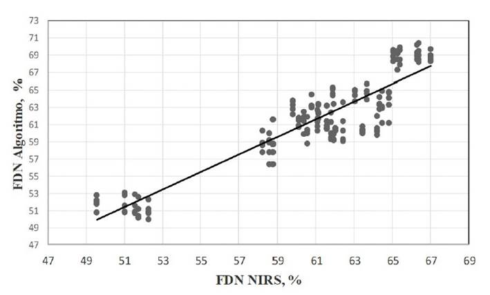 Hay una alta correlación entre los resultados de la fibra detergente neutra (FDN) calculados por espectroscopia del infrarrojo cercano (NIRS) y el análisis de imágenes RGB.