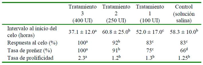 La respuesta reproductiva de las ovejas sometidas a sincronización de celo y aplicación de eCG se presenta en el Cuadro 1.