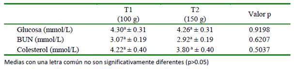 No se encontraron diferencias estadísticas entre tratamientos para las tres variables en evaluación: glucosa, BUN y colesterol (Cuadro 4). Los resultados de glucosa encontrados se hallan dentro de los estándares nacionales para animales con aptitud lechera (Cubillos, 1999); sin embargo, superiores a los reportados por Campos et al. (2007) y Carizi Cherobin et al. (2019) para vacas Holstein en condiciones tropicales en Colombia y Bolivia, respectivamente. El incremento en la concentración de glucosa podría deberse al elevado aporte energético adicional de los suplementos experimentales.