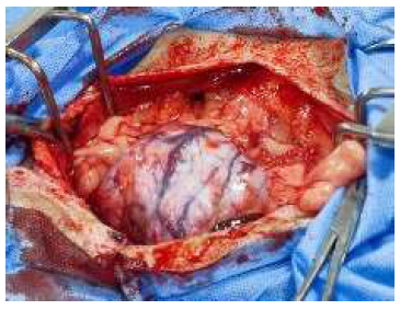 Figura 3 Intervención quirúrgica en un canino Beagle de 8 años. Testículo derecho aumentado de tamaño y con forma irregular (Tunja, Colombia)