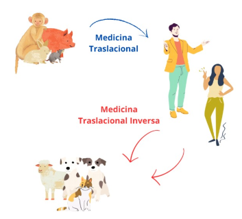 Se utilizan modelos animales en el proceso de descubrimiento y desarrollo de fármacos para caracterizar la fisiopatología de la enfermedad, evaluar el mecanismo de acción de los fármacos y establecer relaciones farmacocinéticas / farmacodinámicas, todo esto con el fin de estimar regímenes de dosificación clínica y determinar márgenes de seguridad y toxicidad (McGonigle y Ruggeri, 2014). Los resultados obtenidos en estudios preclínicos en animales se extrapolan luego a humanos, siendo este enfoque conocido como traslacional (Bhagunde et al., 2019; Scheetz et al., 2021). Sin embargo, como alternativa en las primeras etapas de investigación y desarrollo de fármacos, se propuso la ciencia traslacional inversa, cuyo objetivo es aprovechar la información disponible de humanos y animales que comparten enfermedades similares para desarrollar mejores predicciones y terapias en medicina veterinaria (Figura 3) (Kasicha-yanula y Venkatakrishnan, 2018; Schneider et al., 2018).