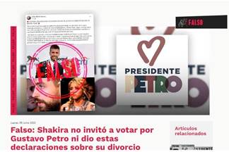 Nota: Esta publicación circuló en Facebook, atribuida falsamente al medio de comunicación TMZ. Indica que, luego de su ruptura con Gerard Piqué, la cantante colombiana habría dicho lo siguiente: “Quiero aprovechar este medio para decirles a todos los COLOMBIANOS que los invito a votar por Gustavo Petro en representación del Pacto Histórico Colombia Humana”; fiesta el próximo domingo 19 de junio” (sic).