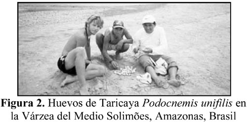 Este trabajo fue realizado de julio a noviembre de 1998, en la Reserva de Desarrollo Sustentable Mamirauá. La reserva está localizada en la parte media del río Solimões, cerca de la ciudad de Tefé, Amazonas, Brasil. El período de desove de Podocnemis unifilis ocurrió en los meses de agosto y septiembre, y la eclosión en octubre y noviembre. Los nidos fueron construidos en sustratos de greda (67.5%), arena (25%), y hojarasca (7.5%). La obtención de crías fue mayor en la playa de arena y menor en los barrancos de tierra gredosa. El hombre y la iguana Tupinambis, son los mayores depredadores de huevos. La protección y manejo de los locales de desove, la educación ambiental, la participación comunitaria y la fiscalización permanente del Instituto Brasilero de los Recursos Naturales y del Medio Ambiente IBAMA son entre las actividades más importantes para viabilizar la recuperación de la población de P. unifilis en esta parte de la Amazonía.
