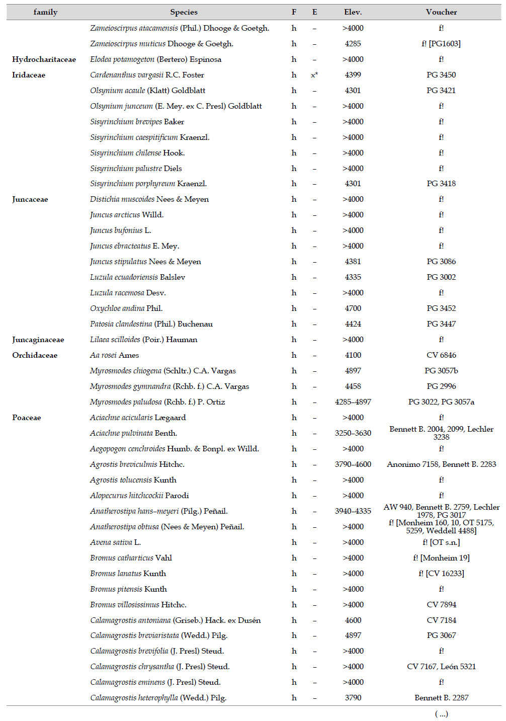 Keywords: High Andean flora; Peru; floristic composition; taxonomy.