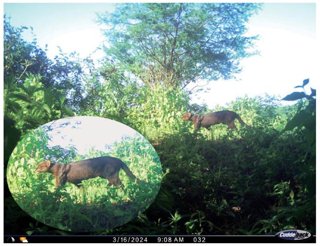 En un estudio previo realizado en el sector Sauce Grande, y en proximidad al punto donde se obtuvo el presente registro, Tovar Narváez (2022) identificó restos de un pequeño félido no determinado en el análisis de heces de Puma concolor, posiblemente perteneciente al P. yagouaroundi. En este trabajo documentamos por primera vez la presencia confirmada de P. yagouaroundi en el Coto de Caza El Angolo, lo que eleva a cuatro el número de especies de la familia Felidae registradas en esta área natural protegida: Puma concolor, Leopardus pardalis (Elías et al., 2021), Leopardus colocolo (Vásquez, 2017; García-Olaechea & Hurtado, 2018) y Puma yagouaroundi (este estudio).
