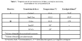 Los termogramas se obtuvieron con un calorímetro Mettler DSC12E y las observaciones de las texturas desarrolladas fueron hechas con un microscopio Nacher equipado con una platina de calentamiento Mettler FP80 y controlador de temperatura Mettler FP82. Las imágenes fueron visualizadas y capturadas con una cámara video Sony CDD-IRIS.