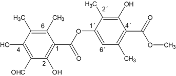Usnic acid, atranorin and 2,4-dihydroxy-3-formyl-6-methylbenzoate were identified by comparison of their spectroscopic data with the literature9,13,14.