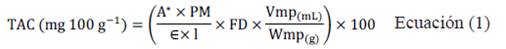 Los porcentajes de actividad antioxidante (%AA) se calcularon a partir de la Ecuación (3):