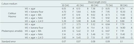 Table 4 Effect of different culture medium on shoot length in Cattleya maxima Lindl. and Phalaenopsis amabilis (L.) Blume in the multiplication experiment