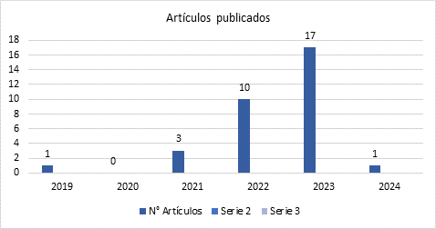 En la figura n° 3 de acuerdo a los artículos publicados por años con mayor cantidad se encuentra el año 2023 con 17 artículos el 2019 con un solo artículo.