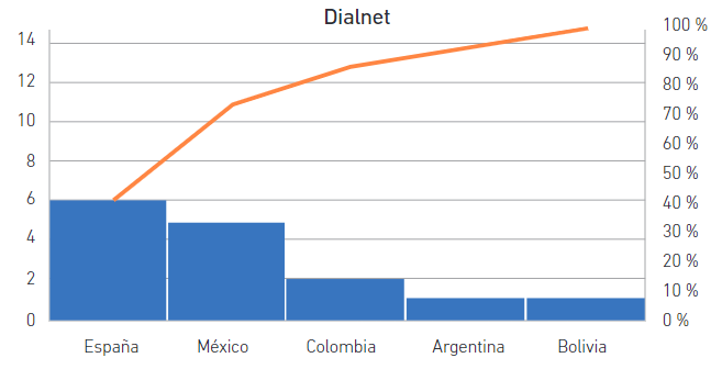 En la plataforma Dialnet, España lidera la lista con una notable producción de seis artículos (véase la Figura 3). Esto subraya el enfoque continuo de España en la generación de conocimiento y la contribución a la comunidad académica. Muy cerca de España, México muestra una presencia sólida, lo que indica un esfuerzo constante en la creación de investigaciones significativas y relevantes (véase la Figura 3).