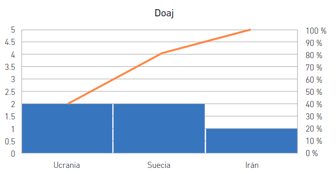 En el caso de DOAJ (véase la Figura 5), Ucrania emerge como un líder en productividad, con una presencia destacada en la creación de investigaciones de calidad. La producción académica de Ucrania demuestra su compromiso con la generación y difusión de conocimiento en diversas áreas del saber. Asimismo, Suiza también se destaca en este ámbito, lo que reafirma su posición como un país que valora la investigación y la colaboración internacional (véase la Figura 5).