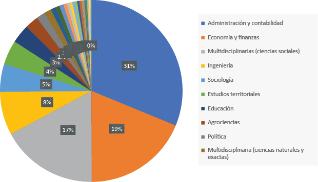 3.Estudios multidisciplinarios (17 %).La naturaleza interdisciplinaria del estudio de las capacidades tecnológicas quedó reflejada en la proporción de investigaciones multidisciplinarias. Estos enfoques integradores abordaron aspectos que van más allá de un solo campo del conocimiento, combinando elementos de diversas disciplinas para comprender mejor la complejidad de las capacidades tecnológicas y su impacto en la competitividad.