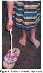 La placenta tiene que ser enterrada bajo la cama de la madre, a una profundidad de aproximadamente 60 cm, lo que brinda una tranquilidad emocional a la madre, al cumplir con el ritual que evitará enfermedades, peligros de brujería y actitudes futuras de desarraigo y desamor de sus hijos, creando un vínculo con la comunidad, y, cuando el niño(a) sea grande, se casará con una mujer o varón de su comunidad y no se alejara, manteniendo la unidad familiar (Figura 5)