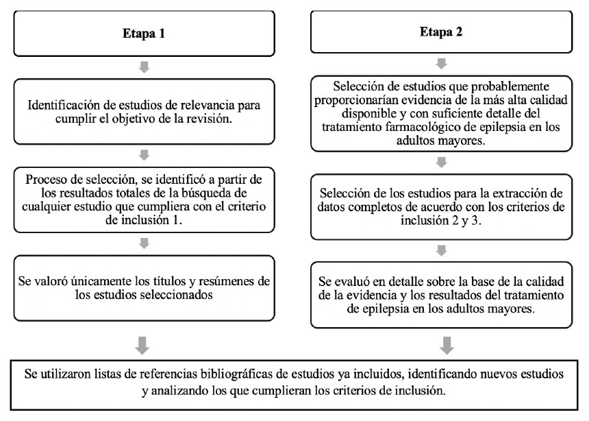 Se efectuó una búsqueda bibliográfica en febrero de 2021. Con el fin de identificar estudios relevantes sobre epilepsia en los AM, se utilizó la base de datos electrónica Pubmed y se aplicó una combinación de términos y títulos de temas médicos (MeSH): “epilepsy”, “seizures”, “anticonvulsants”, “elderly”, “new-onset”, “newly diagnosed”, “causes”, entre múltiples combinaciones con los conectores AND y OR. Se seleccionaron los estudios en los que los términos “epilepsy”, “seizures”, “anticonvulsants”, “elderly” se encontraban en el título o en el resumen, y los estudios en los que “new-onset”, “newly diagnosed”, “causes” se encontraban en cualquier campo. Con el fin de identificar estudios basados en la población de los AM y estudios pertinentes adicionales, se realizó búsquedas bibliográficas adicionales en las siguientes revistas Epilepsia y Neurology utilizando los términos “epilepsy”, “seizures”, “anticonvulsants”, “elderly”.
