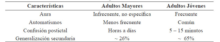 Tabla 1 Diferencias en la sintomatología de las crisis epilépticas entre adultos mayores y adultos jóvenes